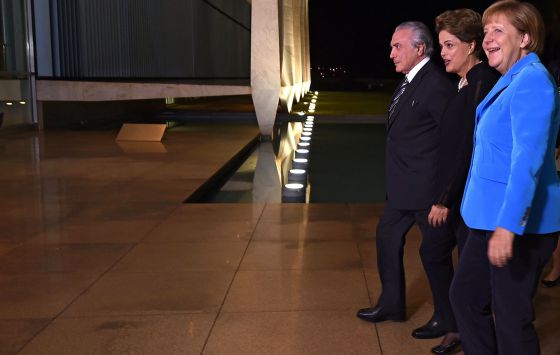 Temer, Dilma e Merkel no Palácio do Planalto. / EVARISTO SA (AFP)